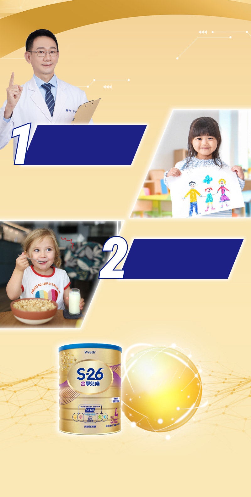 寶寶與大人營養需求不同,日常飲食中的神經鞘磷脂有限,建議搭配S-26配方